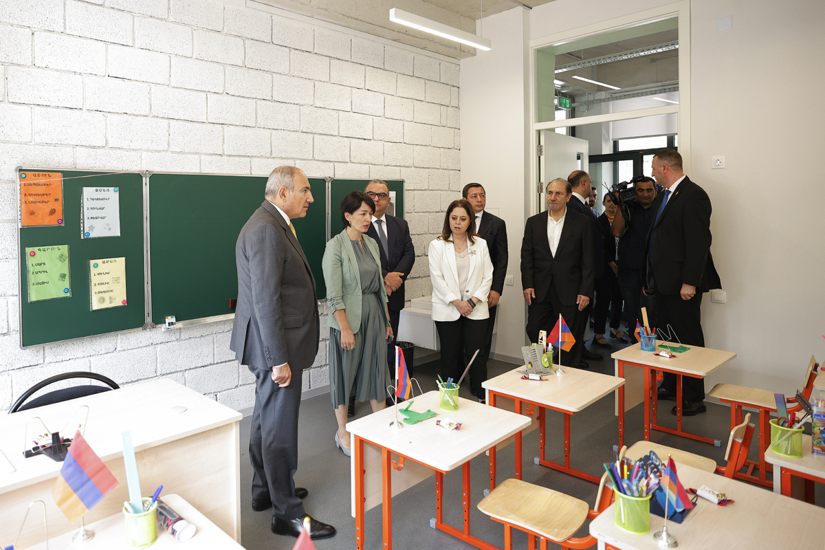 Վարչապետի առաջին կանգառը եղել է Դեբեդի նորակառույց «Հարություն և Սյուզան Մանգոյանների» անվան միջնակարգ դպրոցում: Պաշտոնյաները շրջել են դպրոցում, ծանոթացել իրականացված աշխատանքներին և ստեղծված պայմաններին: Ծրագրի արժեքը 780 մլն դրամ է, որը հատկացրել է «Հայաստանի մանուկներ» հիմնադրամը (ՔՈԱՖ): Դպրոցի գույքը հատկացրել է Կառավարությունը: Առաջիկայում պետության ֆինանսավորմամբ դպրոցում կկառուցվի նաև մարզադահլիճ: Դպրոցը նախատեսված է 192 աշակերտի համար: 2025թ. դրությամբ փաստացի սովորողների թիվը 114 է։ Աշխատանքները մեկնարկել են 2024թ. ապրիլին, ավարտվել 2025թ. սեպտեմբերի 1-ին: Վարչապետը շնորհավորել է ներկաներին դպրոցի բացման առիթով և շնորհակալություն հայտնել Մանգոյան ընտանիքին, «Հայաստանի մանուկներ» հիմնադրամին, բոլոր բարերարներին, որոնք ներդրում են ունեցել դպրոցի կառուցման գործում: