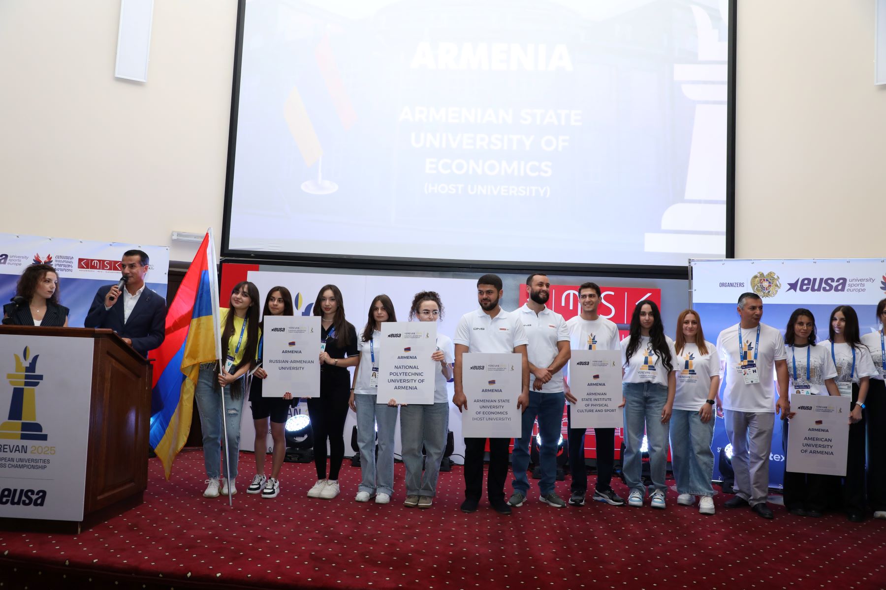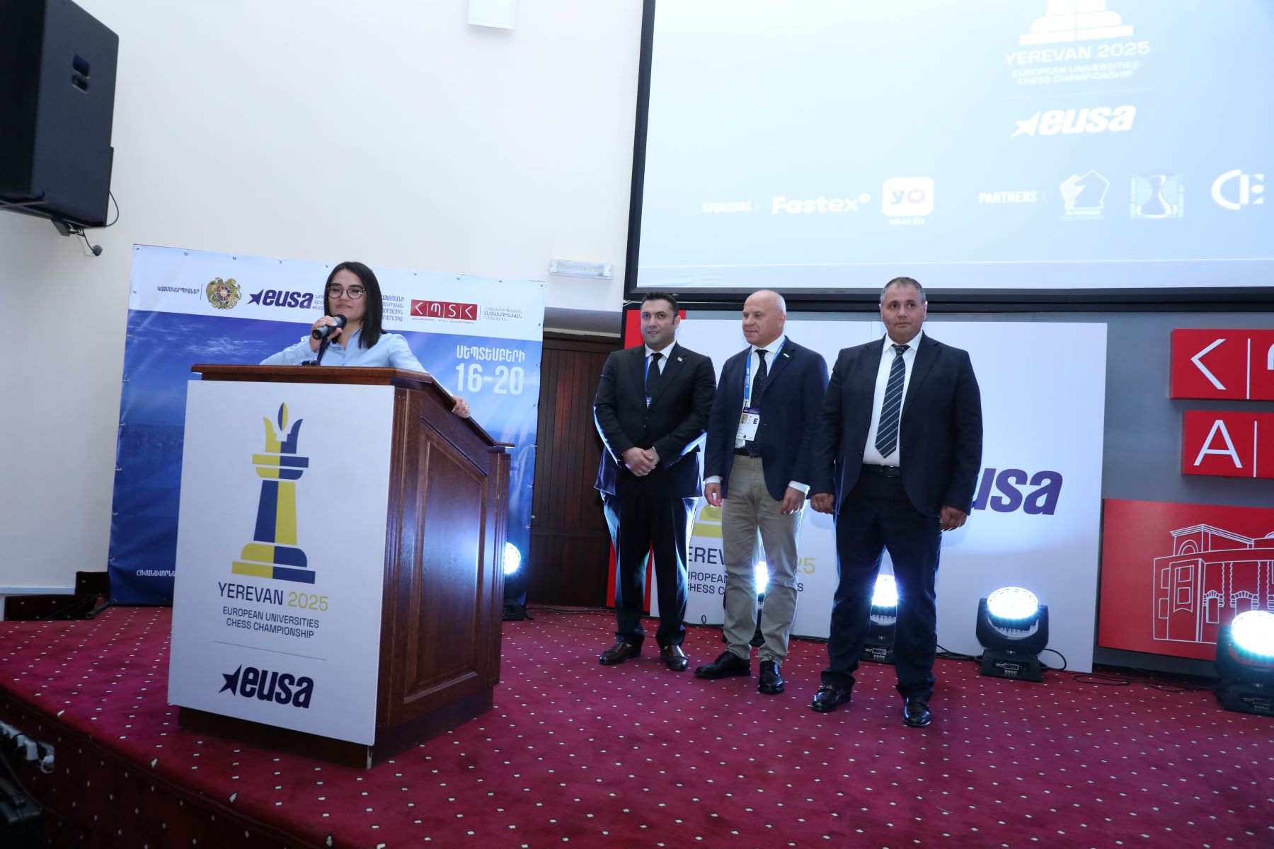 Մասնակիցներին ողջունել և հաջողություն են մաղթել նաև Եվրոպական համալսարանական սպորտի ասոցիացիայի նախագահ Ադամ Ռոշեքը, ՀՊՏՀ ռեկտոր և EUC Chess 2025 կազմակերպչական կոմիտեի նախագահ Արմեն Գրիգորյանը, Հայաստանի ուսանողական մարզական ֆեդերացիայի նախագահ Հովհաննես Գաբրիելյանը: