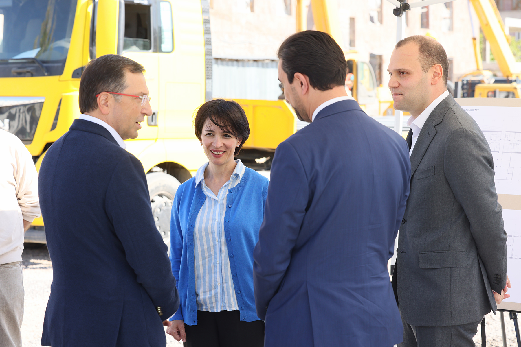 Շինհրապարակում նախարարին և ՀՖՖ նախագահին ներկայացվել են ակադեմիայի նախագծերը, շինարարության ընթացքը և իրականացվող աշխատանքների մանրամասները։ Հայաստանում «Յուվենտուսի» ակադեմիայի հիմնադիր Ալֆրեդ Սադոյանը նշել է, որ շինարարությունն ընթանում է նախատեսվածից ավելի արագ տեմպերով և անգամ առաջ է անցել նախանշված գրաֆիկից։ Նրա խոսքով՝ միջազգային ամենաբարձր չափորոշիչներին համապատասխանող ակադեմիան սաների առջև իր դռները կբացի 2026 թվականի ամռանը։