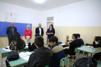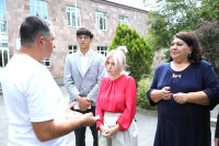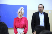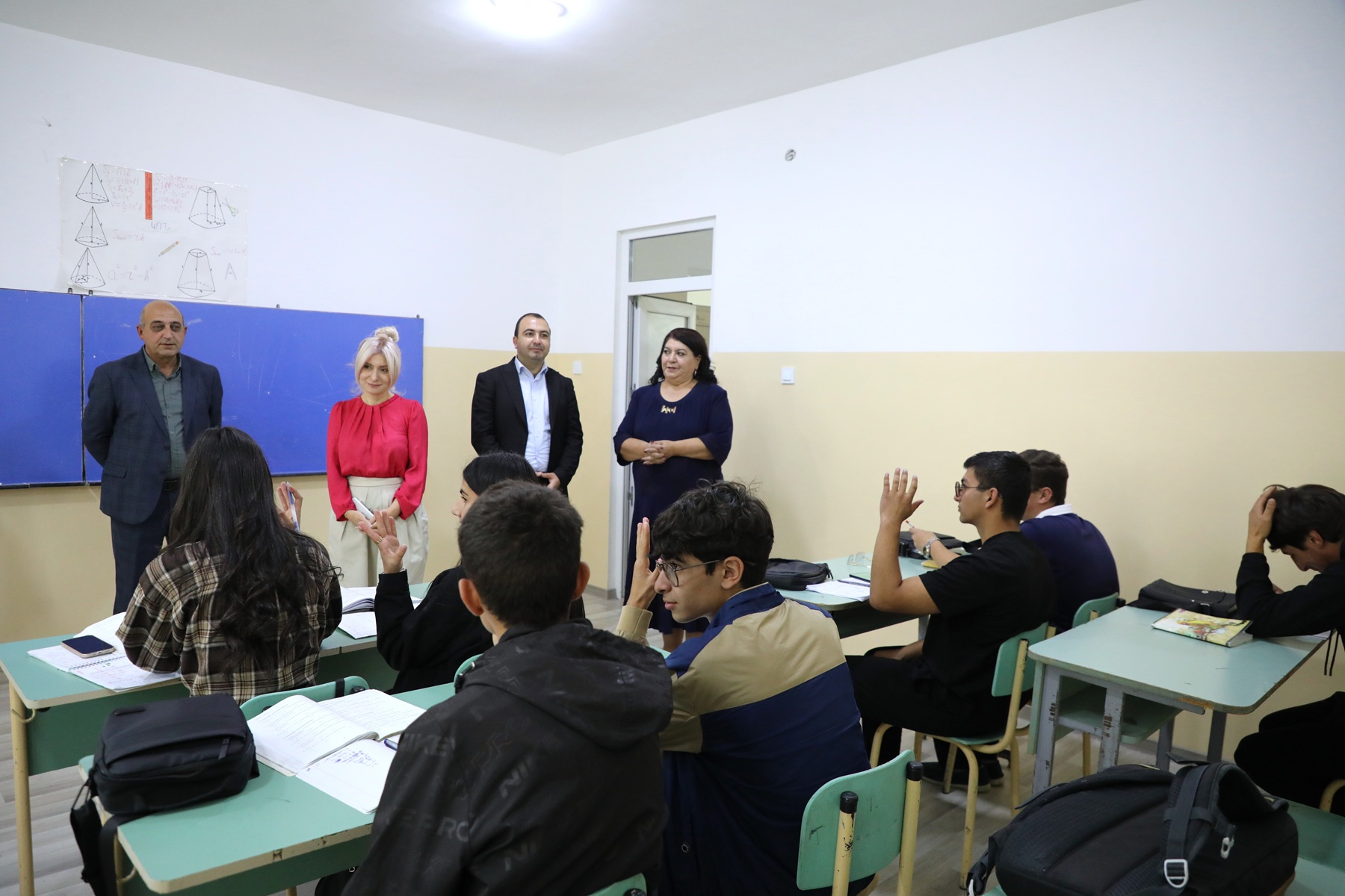 Այցի շրջանակում ԿԳՄՍ նախարարի տեղակալն Ապարանի ֆիզմաթ ավագ դպրոցի տնօրեն Նվարդ Բարսեղյանի ուղեկցությամբ նաև շրջել է դասասենյակներում, զրուցել աշակերտների հետ:
