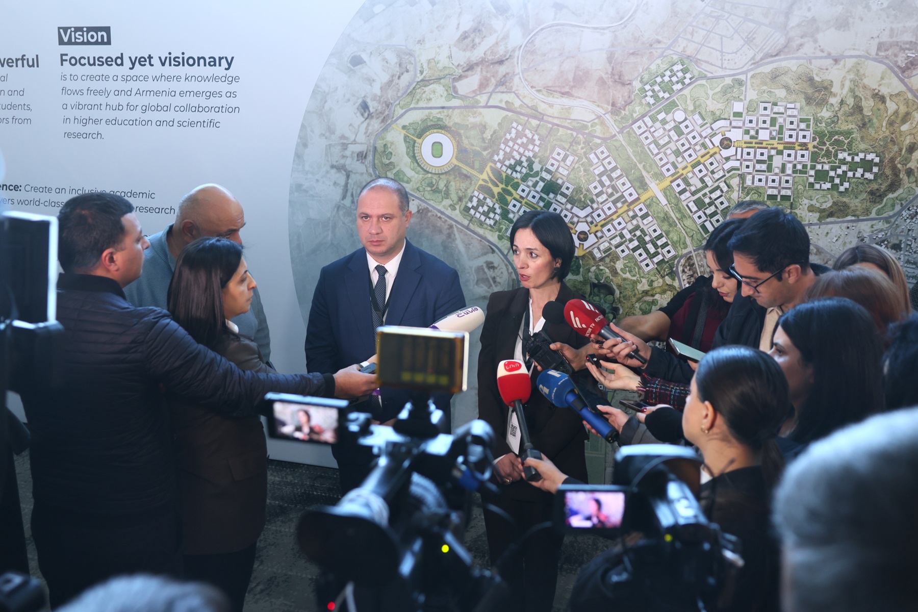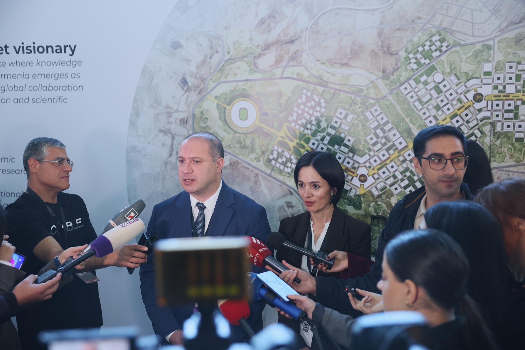 «Նախագծի շուրջ աշխատում ենք գրեթե 2 տարի: Բավականին մեծ ճանապարհ ենք անցել, և այժմ ամեն ինչ պատրաստ է, որպեսզի սկսենք ծրագրի իրականացումը: Գործընկերների հետ միասին հստակեցված է նաև իրականացման ռազմավարությունը: Առաջին փուլը նախատեսված է իրականացնել մինչև 2030 թվականը, ինչն իրատեսական եմ համարում: Առաջին փուլի համար նախատեսված է տեխնոլոգիական բուհի հիմնում ակադեմիական քաղաքում: Կունենանք շուրջ 3600 ուսանողների և ակադեմիական աշխատակազմի համար նախատեսված կացարաններ և այլ անհրաժեշտ ենթակառուցվածքներ»,- պատասխանելով լրագրողի հարցին՝ ասել է ԿԳՄՍ նախարար Ժաննա Անդրեասյանն ու ընդգծել՝ ամեն ինչ պատրաստ է «Ակադեմիական քաղաք» ծրագրի իրականացման համար: