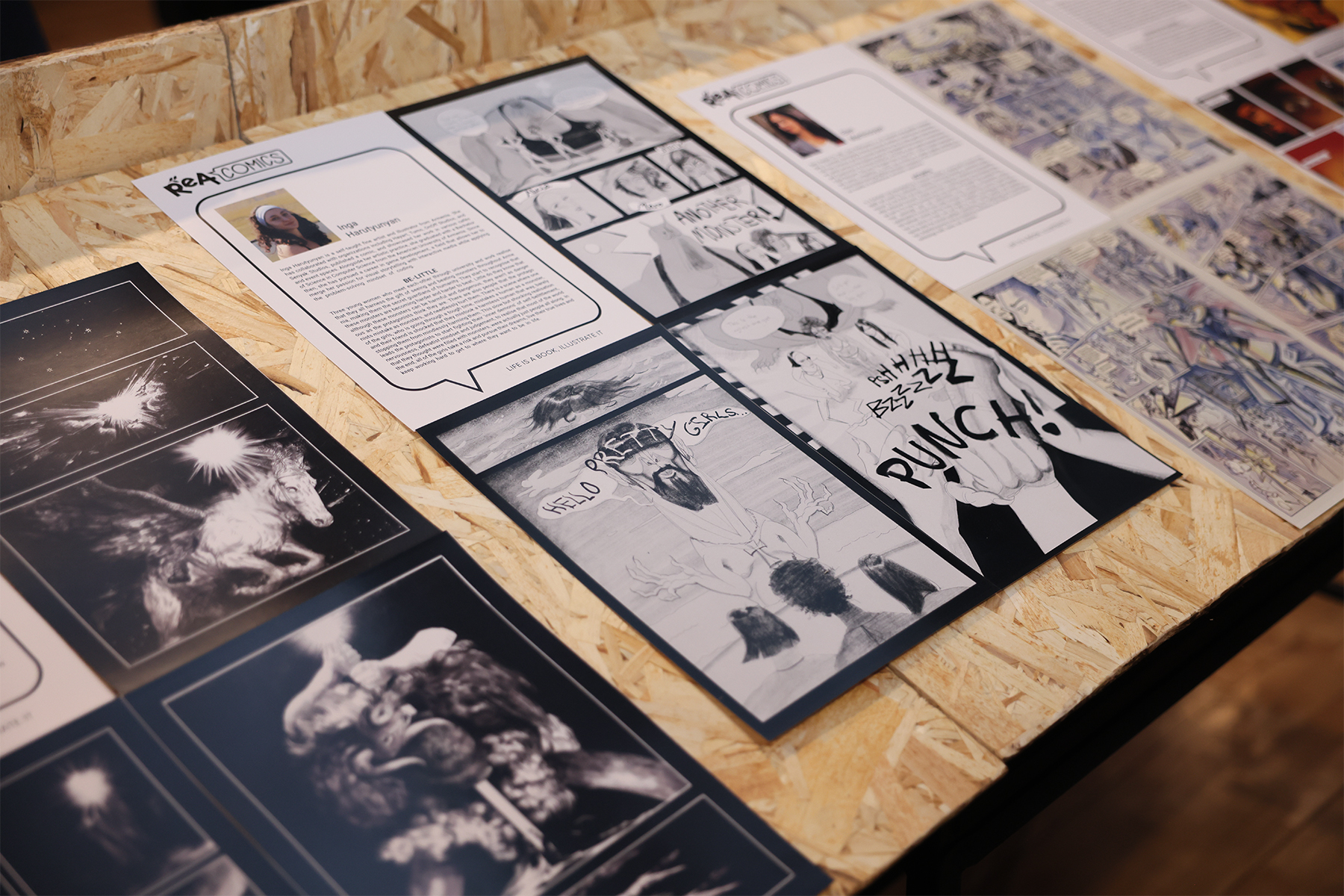 Ցուցահանդեսին ներկայացվել են մրցույթի մասնակիցների աշխատանքները, միջազգային հեղինակների պատկերապատված վեպերից հատվածներ՝ թարգմանված և հրատարակված ReA Comics-ի կողմից։ Ներկայացվել են նաև հատվածներ նախորդ տարվա մրցույթի հաղթող Լենա Դերունցի «Մխիթարանք» պատկերապատված գրքից։