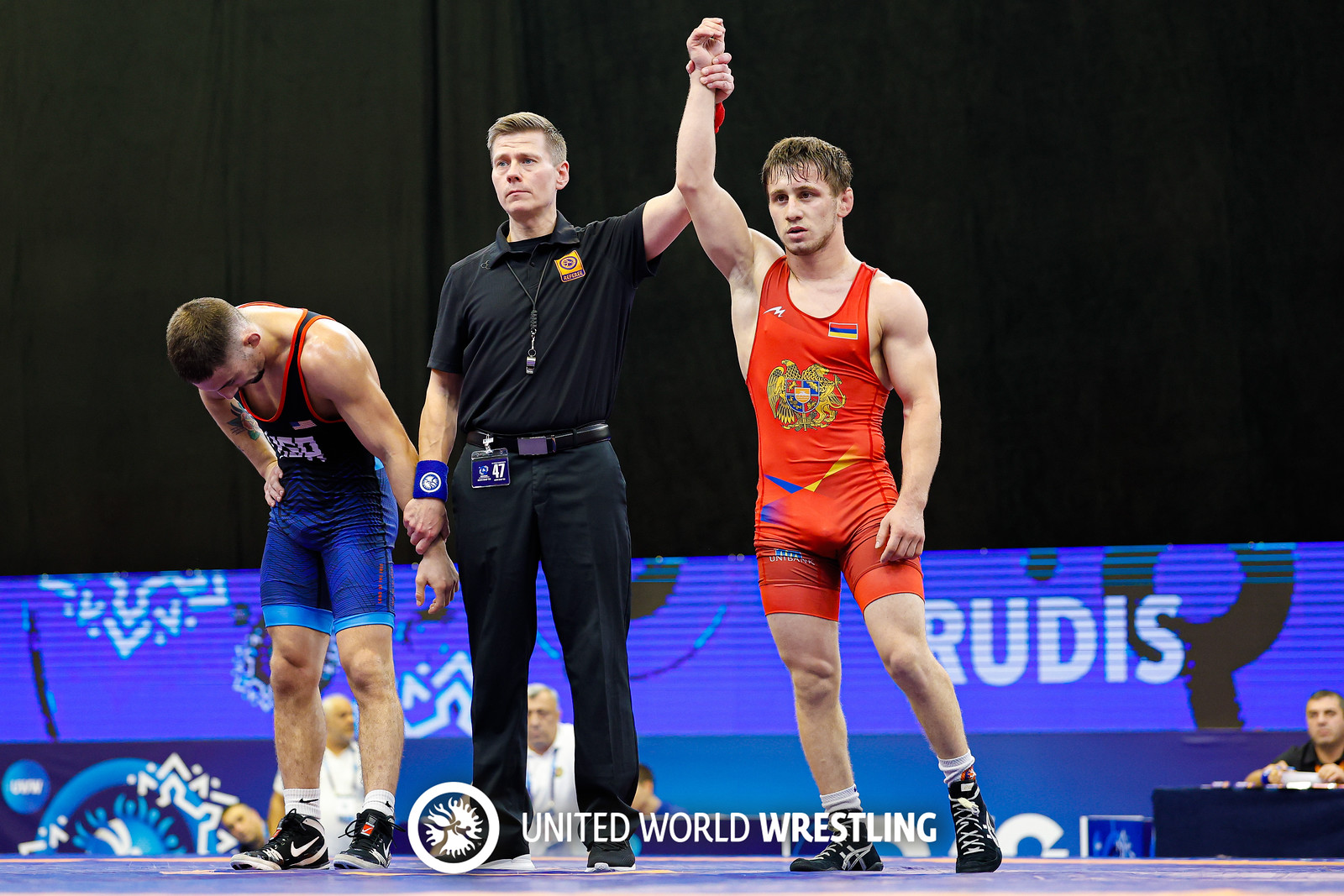 Սփոփիչ գոտեմարտում հայ ըմբիշը տուշեով առավելության է հասել ճապոնացի Կիյո Կիտավակիի նկատմամբ, իսկ բրոնզե մեդալի համար պայքարում մրցել է UWW-ի դրոշի ներքո հանդես եկող Մաքսիմ Ավերինի հետ: Գրանցվել է 1-1 հաշիվը, և հաղթանակը շնորհվել է ռուս մրցակցին: