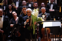 «Ինձ համար նաև շատ կարևոր է, որ արդեն 25 տարի է նվագախումբը ղեկավարում է մեր սիրելի մաեստրո Էդուարդ Թոփչյանը՝ Ֆիլհարմոնիկի պատմության ամենաերկարակյաց գեղարվեստական ղեկավարն ու գլխավոր դիրիժորը: Ինձ համար այս տարին ևս հոբելյանական է. լրացավ ուղիղ 50 տարի այն օրից, երբ առաջին անգամ Ֆիլհարմոնիկը՝ այն ժամանակ Հայաստանի պետական սիմֆոնիկ նվագախումբը, առաջին անգամ կատարեց իմ ստեղծագործությունը, որը միջազգային հեղինակավոր մրցույթում արժանացել էր մրցանակի»,- ստեղծագործության կատարման ավարտից հետո նշել է Երվանդ Երկանյանը: