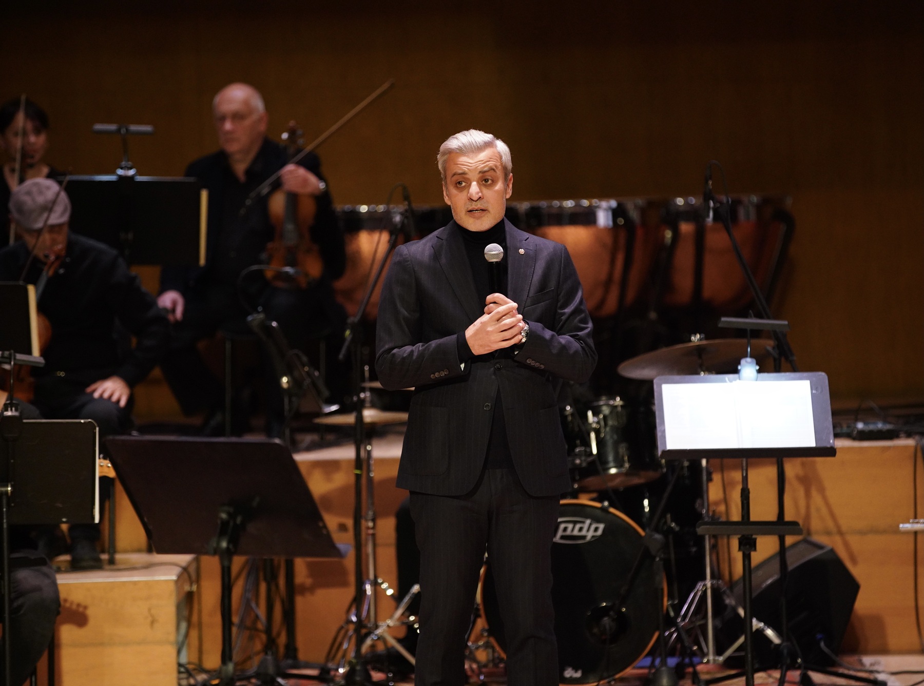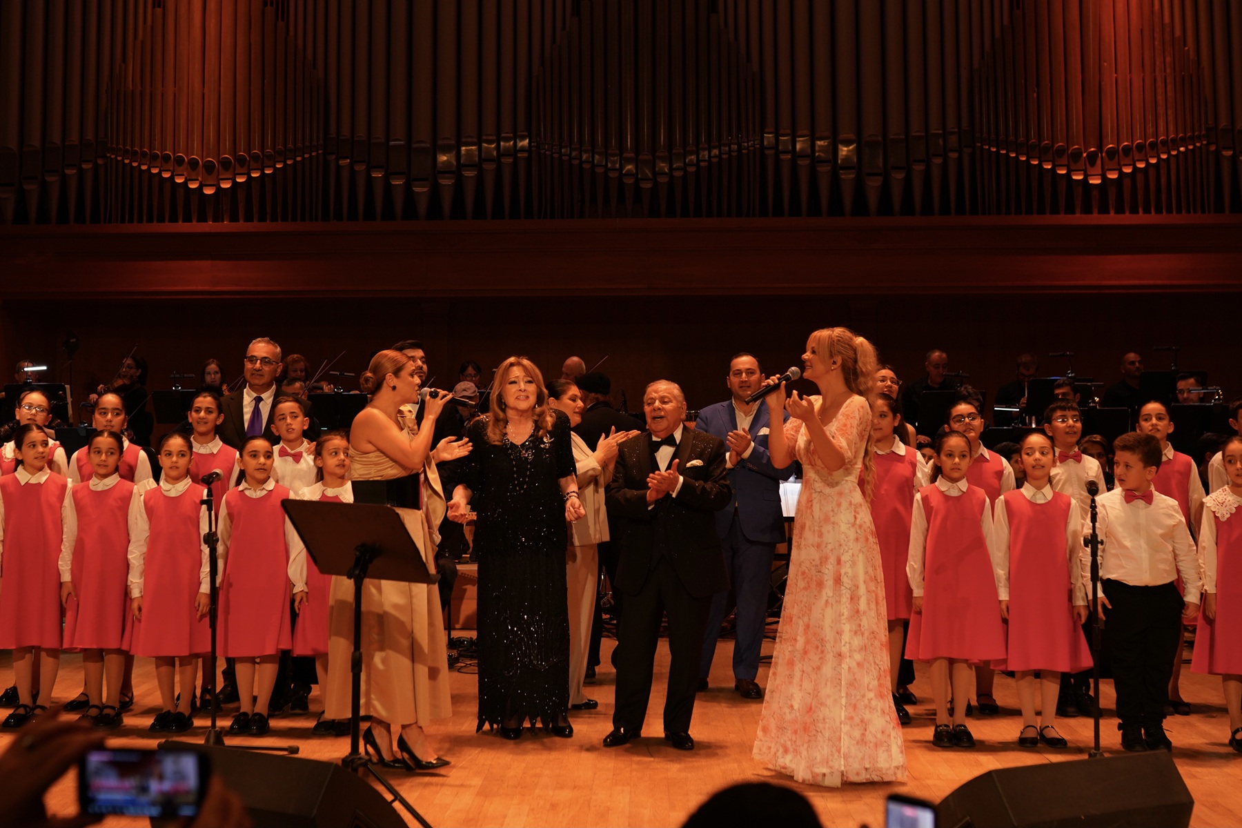 Համերգային երեկոն ընթացել է Հայաստանի ռադիոյի էստրադային-սիմֆոնիկ նվագախմբի նվագակցությամբ. գեղարվեստական ղեկավար և դիրիժոր՝ ՀՀ ժողովրդական արտիստ Երվանդ Երզնկյան: