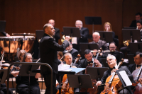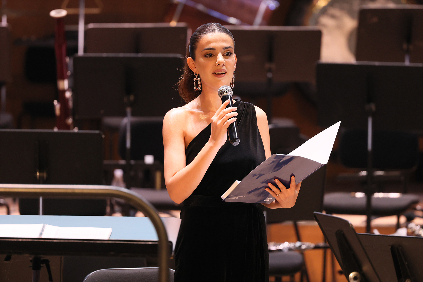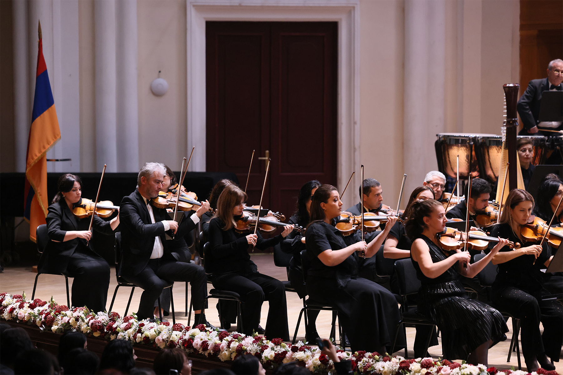 Հոբելյանական երեկոյի ընթացքում հանդես է եկել Հայաստանի ազգային Ֆիլհարմոնիկ նվագախումբը․ հնչել են Արամ Խաչատրյանի, Ալեքսանդր Սպենդիարյանի, Գրիգոր Եղիազարյանի, Ալեքսանդր Հարությունյանի և Կոմիտասի ստեղծագործություններից հատվածներ: