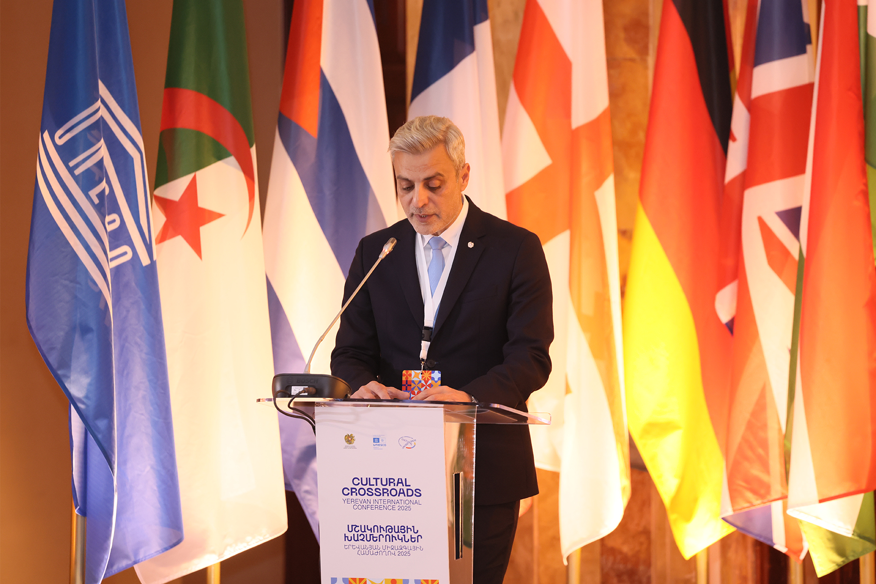 Ողջույնի խոսքով հանդես է եկել նաև Արտաքին գործերի նախարարի տեղակալ Մնացական Սաֆարյանը և ընդգծել՝ կոնվենցիան այսօր ավելի քան արդիական է գլոբալացվող, թվայնացվող և մարտահրավերներով լի աշխարհում, քանի որ թվային հեղափոխությունը և արհեստական բանականության արագ զարգացումը վերաձևավորում են մշակութային արժեքների ստեղծման, տարածման և սպառման եղանակները: Այս համատեքստում նաև կարևորել է կոնվենցիայի 20-ամյակի արժևորումը՝ որպես այդ փաստաթղթի իրական նշանակության հաստատում: