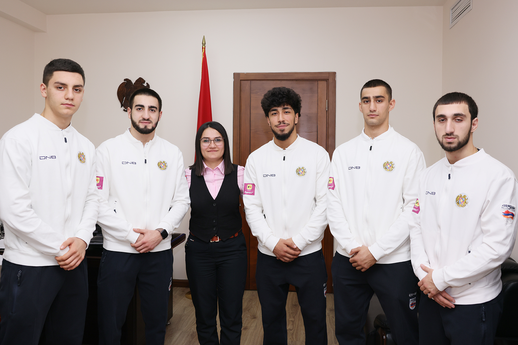 ԿԳՄՍ նախարարի տեղակալ Հասմիկ Ավագյանն այսօր ընդունել է անկախ Հայաստանի կարատեի աշխարհի առաջնության առաջին բրոնզե մեդալակիր Սուրեն Հարությունյանին, Երևանում անցկացված Եվրոպայի մեծահասակների 60-րդ առաջնության բրոնզե մեդալակիր Գոռ Ներսիսյանին, 2025 թ. Սուրդլիմպիկ խաղերի բրոնզե մեդալակիր Գագիկ Ոսկանյանին և տարվա ընթացքում բարձր արդյունքներ ցուցաբերած մյուս մարզիկներին: