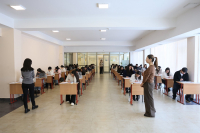 Քննական գործընթացի մեկնարկից առաջ Ժաննա Անդրեասյանը նախարարի տեղակալ Արաքսիա Սվաջյանի ուղեկցությամբ շրջել է քննասենյակներում և զրուցել դիմորդների հետ: