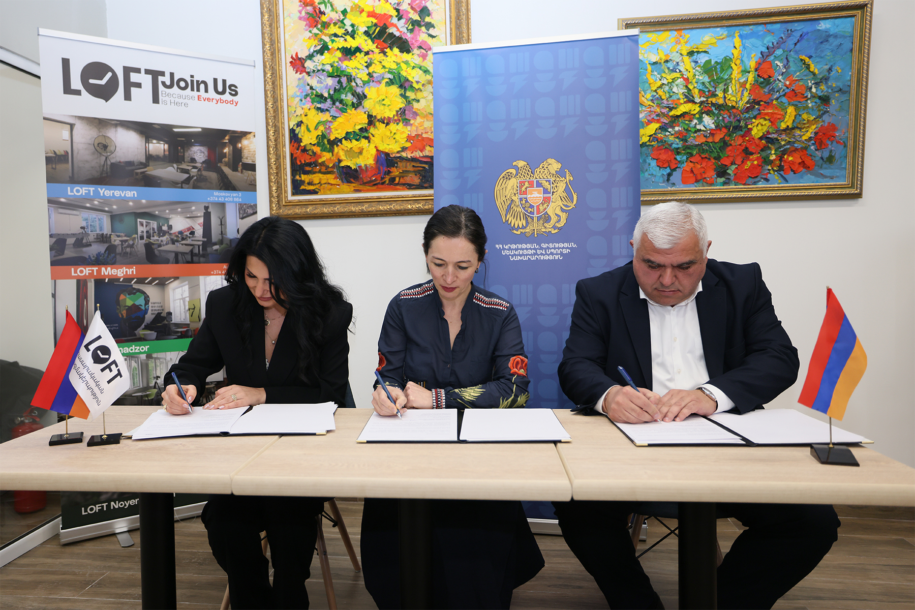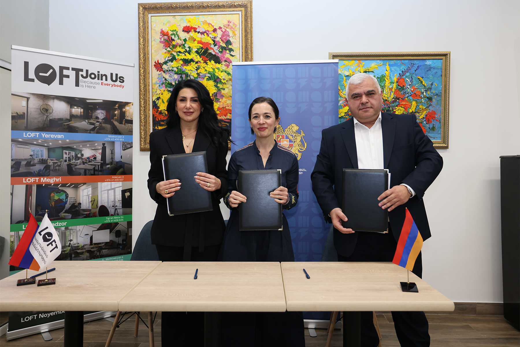 Երիտասարդական կենտրոնների բացման շրջանակում կնքվել են նաև եռակողմ հուշագրեր՝ ԿԳՄՍՆ-ՏԻՄ-քաղաքացիական հասարակության կազմակերպություն: Ըստ այդմ՝ Նոյեմբերյանում հուշագիրը կնքել են ԿԳՄՍ նախարար Ժաննա Անդրեասյանը, համայնքի ղեկավար Արսեն Աղաբաբյանը, «Լոֆթ» կրթության, մշակույթի և երիտասարդության զարգացման համահայկական ՀԿ-ի տնօրեն Արևիկ Համբարձումյանը: Հրազդանում հուշագիրը ստորագրել են Ժաննա Անդրեասյանը, համայնքի ղեկավար Սևակ Միքայելյանը, «Հայի բռունցք» երիտասարդության, մշակութային ՀԿ-ի նախագահ Գարիկ Աղասյանը, Աղավնաձորում՝ ԿԳՄՍ նախարարը, համայնքի ղեկավար Նարեկ Հարությունյանը և «Հայ առաջադեմ երիտասարդություն» ՀԿ-ի նախագահ Գրիգոր Երիցյանը: