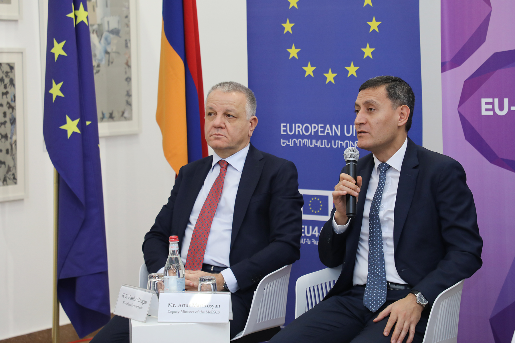 Ելույթով հանդես է եկել նաև ԵՄ դեսպան Վասիլիս Մարագոսը՝ ընդգծելով. «Անհրաժեշտ է ապահովել, որպեսզի երիտասարդները, մասնավորապես՝ պակաս բարենպաստ պայմաններում ձևավորված խմբերի ներկայացուցիչները, ունենան լիարժեք հնարավորություններ ինքնիրացման համար՝ իրենց ներուժը ճանաչելու, սեփական կարիքները հստակ ձևակերպելու, համապատասխան հմտություններ զարգացնելու, ինչպես նաև արդյունավետորեն ներգրավվելու երկխոսության և որոշումների կայացման գործընթացներում։ Մեր կողմից նպատակ է դրված ապահովել, որ յուրաքանչյուրն ունենա իր արժանապատիվ տեղը, և որևէ մեկն ուշադրությունից դուրս չմնա»:
