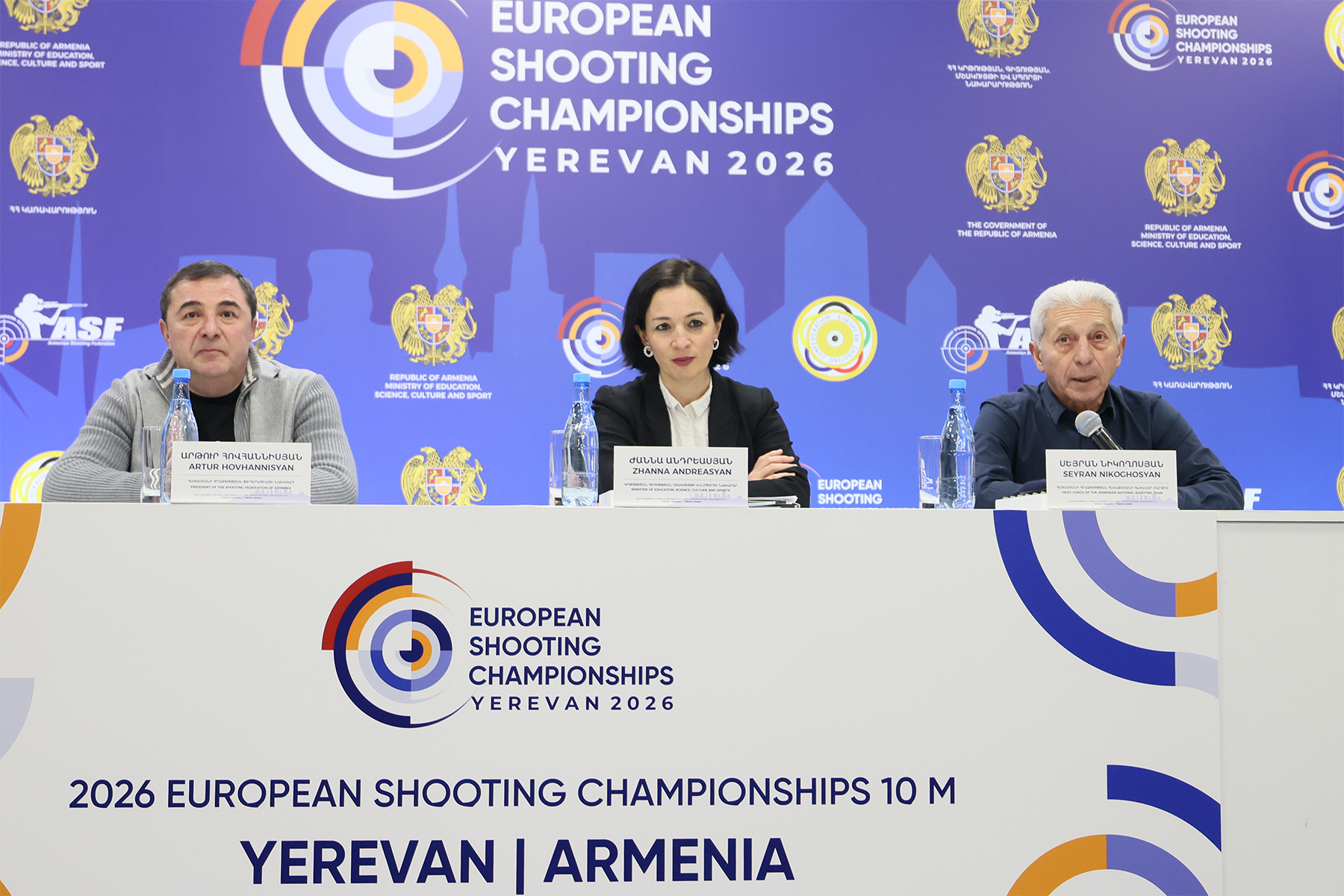 Հայաստանն առաջին անգամ կընդունի Սպորտային հրաձգության Եվրոպայի մեծահասակների առաջնությունը: Փետրվարի 27-ից մեկնարկելիք առաջնությանն ընդառաջ ՀՀ կրթության, գիտության, մշակույթի և սպորտի նախարար Ժաննա Անդրեասյանը, Հայաստանի հրաձգության ֆեդերացիայի նախագահ Արթուր Հովհաննիսյանը և հրաձգության հավաքականի գլխավոր մարզիչ Սեյրան Նիկողոսյանը հանդիպել են լրագրողների հետ, ներկայացրել կազմակերպչական աշխատանքները: