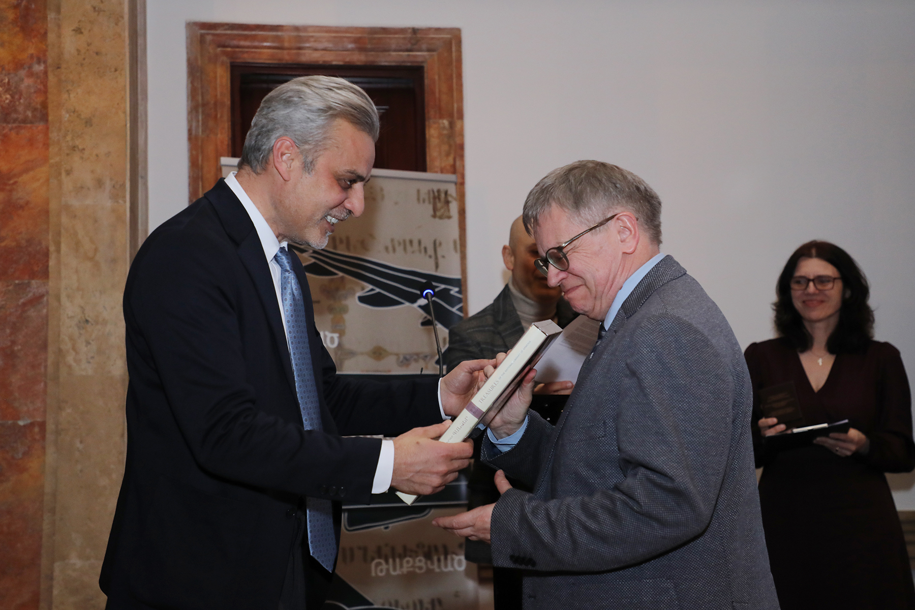 Միջոցառման ընթացքում հայագիտության զարգացման և Սկևռայի Ավետարանի պահպանման գործում ունեցած նշանակալի ավանդի համար Մայնցի Յոհաննես Գուտենբերգի անվան համալսարանի պրոֆեսոր Գյունտեր Պրինցինգը պարգևատրվել է ՀՀ ԿԳՄՍՆ մեդալով: Նախարարի տեղակալ Դանիել Դանիելյանը մեդալը հանձնել է ֆիլմի ռեժիսոր Վահրամ Մխիթարյանին՝ Գերմանիայում բնակվող պրոֆեսորին փոխանցելու նպատակով: