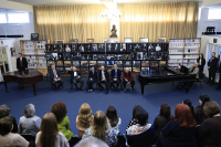 Վարչապետ Նիկոլ Փաշինյանը և ԿԳՄՍ նախարար Ժաննա Անդրեասյանը Հայաստանի ազգային ակադեմիական երգչախմբի շենքում՝ Պուշկին 60 հասցեում, ներկա են գտնվել ԽՍՀՄ և ՀԽՍՀ պետական մրցանակների դափնեկիր, Հայաստանի ազգային հերոս, դիրիժոր, Հայաստանի ազգային ակադեմիական երգչախմբի ղեկավար Հովհաննես Չեքիջյանի անվանատախտակի բացման հանդիսավոր արարողությանը։