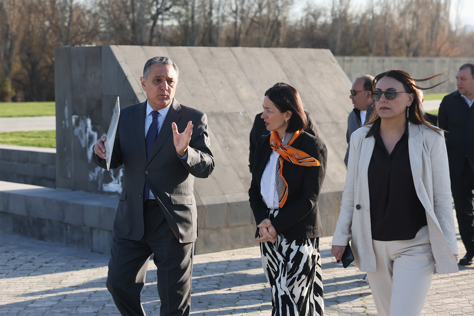 Ցեղասպանության հուշահամալիրի նախագծի հեղինակային խմբի ճարտարապետների և կապալառու շինարարական ընկերության ներկայացուցիչների հետ նախարարը շրջել է տարածքում, հետևել հիմնանորոգման և բարեկարգման աշխատանքների ընթացքին։