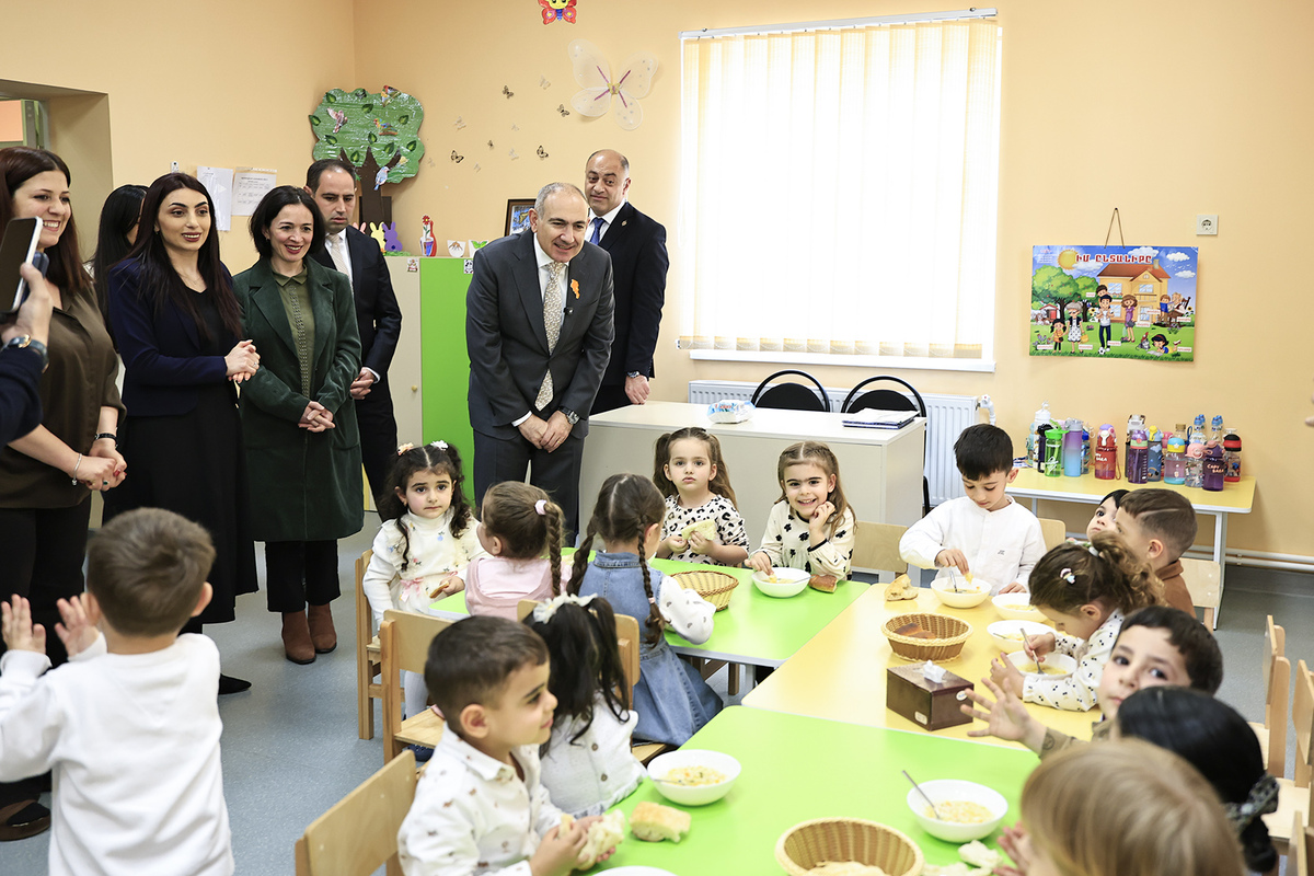 Վարչապետի առաջին կանգառը եղել է Վաղարշապատ համայնքի Էջմիածին բնակավայրի թիվ 6 «Արևիկ» մանկապարտեզը։ Սուբվենցիոն ծրագրի իրականացման արդյունքում հիմնանորոգվել է մանկապարտեզի շենքը, ինչպես նաև կատարվել են նոր եռահարկ մասնաշենքի կառուցման աշխատանքներ։ Շինարարական աշխատանքների ընդհանուր արժեքը կազմել է 734 մլն դրամ, որից ավելի քան 513 մլն դրամը հատկացվել է Կառավարության կողմից: Մանկապարտեզ է հաճախում 294 սան։