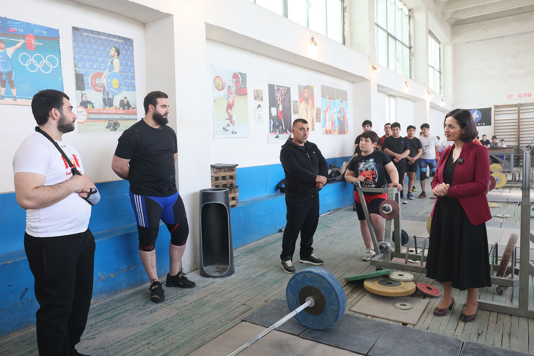 Յուրի Սարգսյանի ուղեկցությամբ ԿԳՄՍ նախարարն ու նախարարի տեղակալը շրջել են ծանրամարտի մարզադպրոցում, ծանոթացել ենթակառուցվածքային պայմաններին, զրուցել մարզվողների հետ: Շնորհավորելով սպորտի միջազգային օրվա առթիվ՝ ԿԳՄՍ նախարարը շնորհակալություն է հայտնել Յուրի Սարգսյանին սպորտում անուրանալի ներդրման համար: