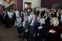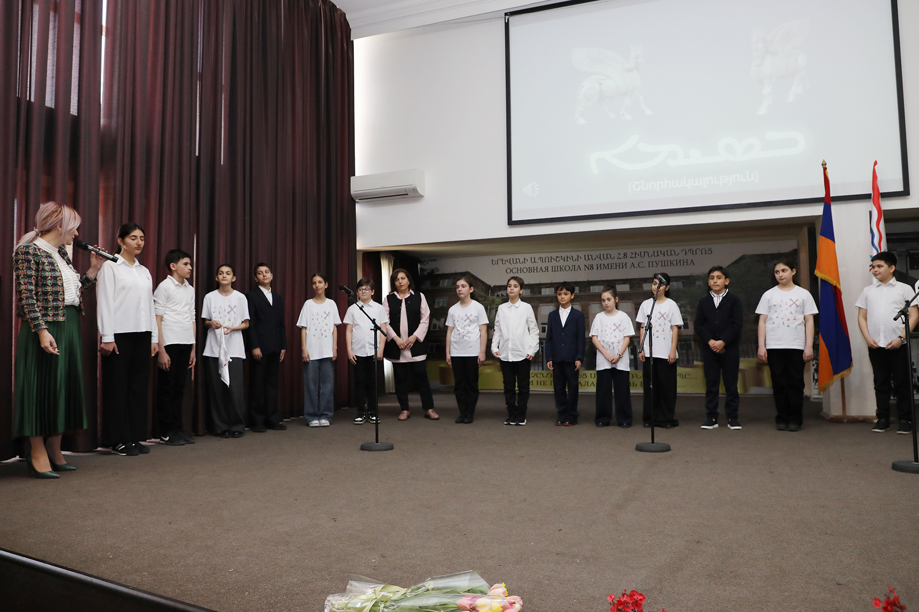 Նախարարի տեղակալը շնորհակալություն է հայտնել ազգային փոքրամասնությունների լեզուներով դասավանդող ուսուցիչներին կարևոր աշխատանքի համար, իսկ դպրոցին՝ միջոցառման կազմակերպման և կրթությունը հետաքրքիր, բազմաբովանդակ դարձնելու համար: