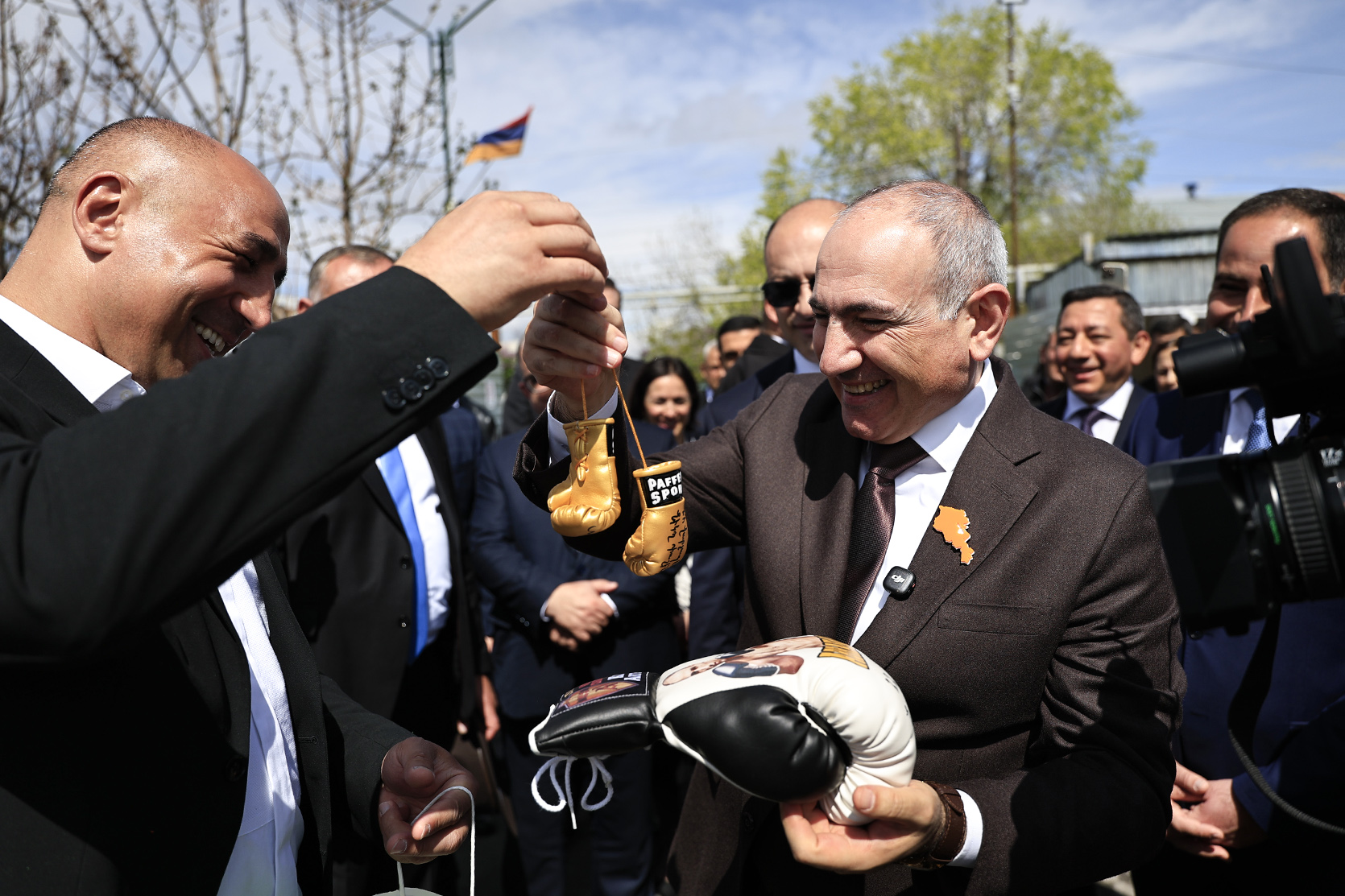 Վարչապետը շնորհավորել է ներկաներին մարզահամալիրի հիմնարկեքի առիթով և վստահություն հայտնել, որ այն շահագործման կհանձնվի սահմանված ժամկետներում և բարձր որակով։ Երկրի ղեկավարը հավելել է, որ Սիմոն Մարտիրոսյանի անվան մարզադպրոցն արդեն գործում է, Ալագյազ գյուղում Ռոման և Մալխաս Ամոյանների անվան դպրոցի հիմնարկեքը կլինի մայիսին, որից հետո կսկսվի շինարարությունը։ Նիկոլ Փաշինյանի խոսքով՝ Կառավարության այս քաղաքականությունն ուղղված է միջազգային ասպարեզում հաջողություններ արձանագրած մարզիկներին արժևորելուն, երկրում սպորտի զարգացմանն ու առողջ ապրելակերպի խթանմանը։