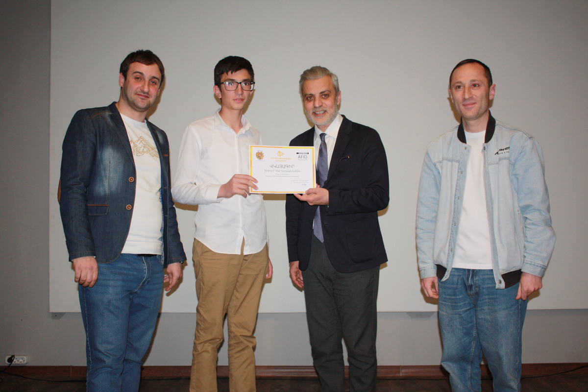 ԵԹԿՊԻ-ի «Անրի Վեռնոյ» կինոսրահում տեղի է ունեցել ծրագրի փակման հանդիսավոր արարողությունը, որին ներկա են եղել ԿԳՄՍ նախարարի տեղակալ Դանիել Դանիելյանը և «Կինոդպրոց առանց սահմանների» կրթական ծրագրի ղեկավար Գուժ Թադևոսյանը:
