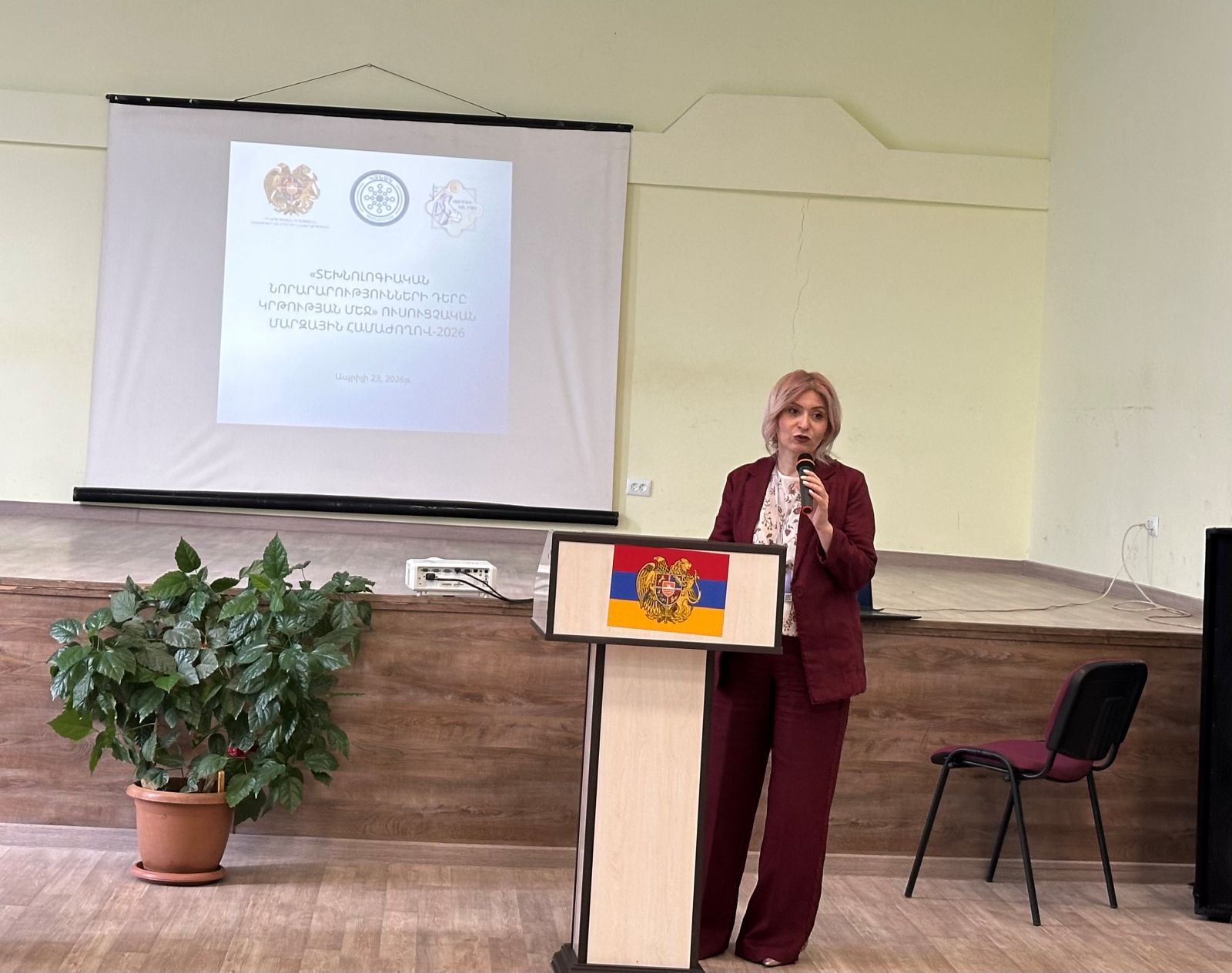 Ողջունելով մասնակիցներին՝ ԿԳՄՍ նախարարի տեղակալ Արաքսիա Սվաջյանը հույս է հայտնել, որ ուսուցչական աշխատաժողովը մանկավարժական փորձը կիսելու, տարածելու, խնդիրները վերհանելու և լուծման ուղիները միասին գտնելու լավագույն հարթակներից է. «Հաշվի առնելով տեխնոլոգիաների առկայությունը մեր կյանքի բոլոր ոլորտներում՝ չենք կարող դրանք շրջանցել նաև դպրոցներում ուսուցումը կազմակերպելիս՝ սովորելու և սովորեցնելու գործընթացում։ Աշակերտների համար դասապրոցեսը հետաքրքրական դարձնելու համար պետք է լինել առավելապես նորարար, ուստի կարևոր հարցերից է՝ դպրոցներում տեխնոլոգիական ուղղությամբ ինչպիսի կրթություն պետք է ապահովել, որպեսզի երեխաները միաժամանակ լինեն և՛ մրցունակ, և՛ պաշտպանված: Տեխնոլոգիաներն իրենց հետ բերել են շատ լուծումներ՝ հեշտացնելով գործընթացները, բայց դրանք միաժամանակ պարունակում են կիբերանվտանգության, կախվածության, ինքնուրույն մտածողության հետ կապված ռիսկեր: Ուրախ եմ, որ այսօրվա քննարկումները, մտքերի փոխանակումները մեկ քայլ առաջ կմղեն այս թեմայով խնդիրների լուծումները»: