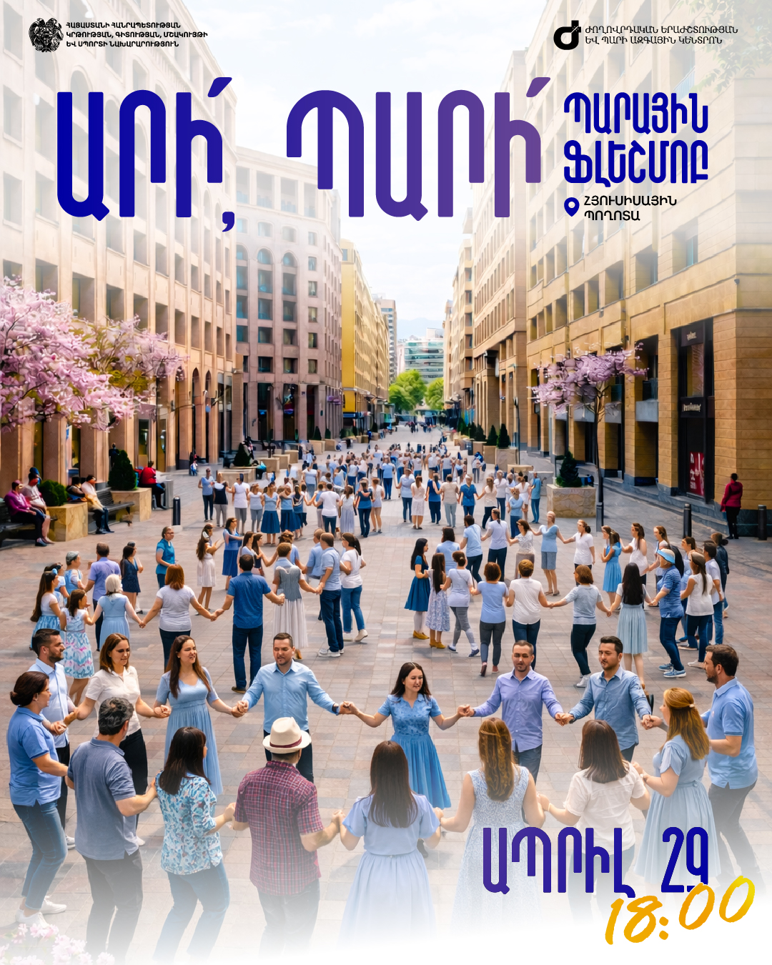ԿԳՄՍ նախարարությունը և Ժողովրդական երաժշտության և պարի ազգային կենտրոնը հրավիրում են բոլորին՝ միանալու տոնին և մասնակցելու «Արի՛, պարի՛» նախաձեռնությանը՝ դառնալով հայկական պարի կրողն ու տարածողը։