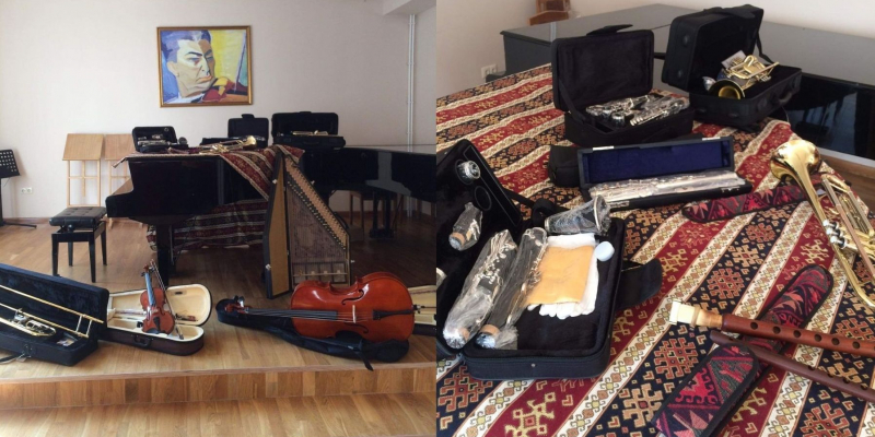 2019 թ. ձեռք են բերվել 87 երաժշտական գործիք, այդ թվում՝ դաշնամուր (8 հատ), ջութակ 1/8 (4 հատ), ջութակ 1/4 (7 հատ), ջութակ 2/4 (6 հատ), ջութակ 3/4 (1 հատ), ջութակ 4/4 (2 հատ), թավջութակ 1/4 (1 հատ), թավջութակ 2/4 (2 հատ), թավջութակ 3/4 (2 հատ), թավջութակ 4/4 (1 հատ), շեփոր (6 հատ), կլարնետ (6 հատ), ֆլեյտա (4 հատ), քանոն (10 հատ), քամանչա (3 հատ), թառ (2 հատ), սանթուր (4 հատ), ուդ (1 հատ), դուդուկ (9 հատ), շվի (7 հատ), սրինգ (1 հատ):