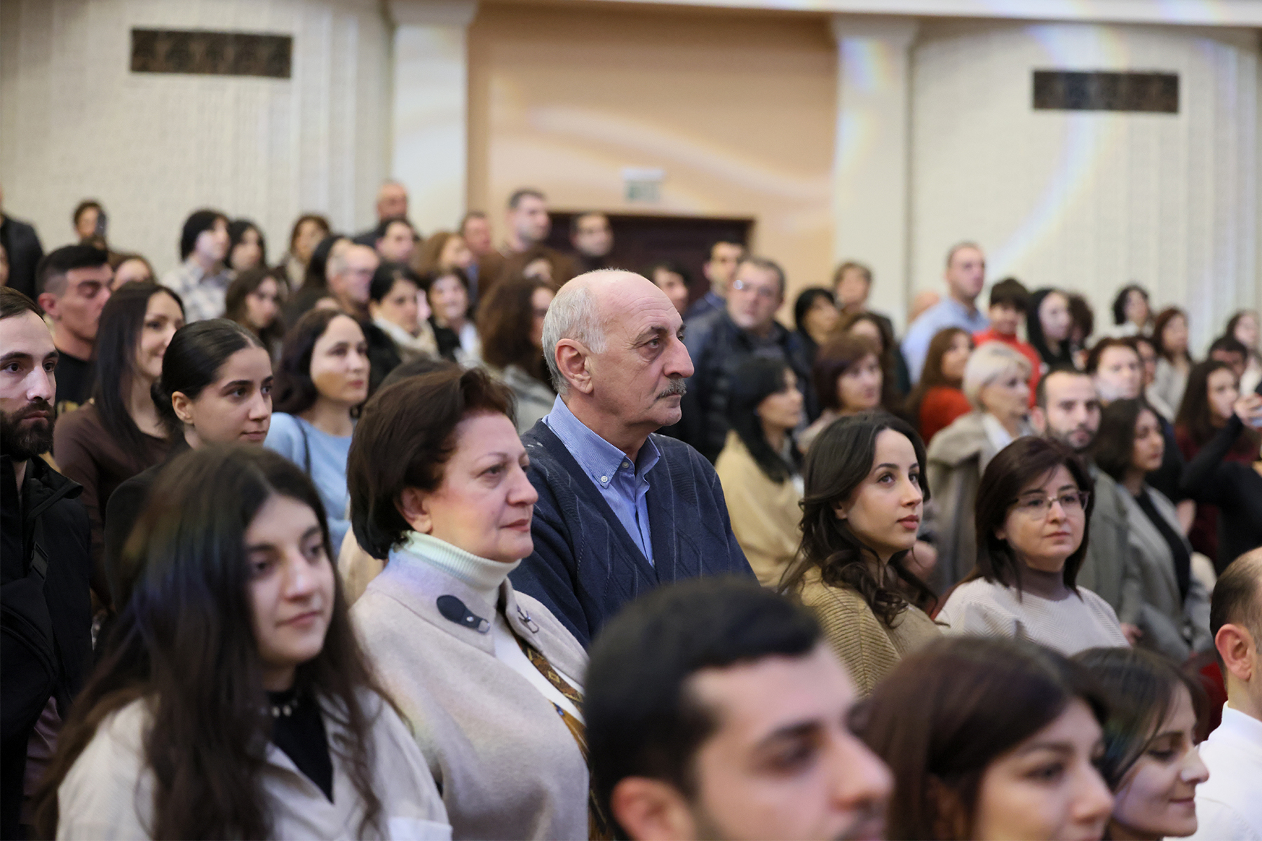 The concert began with the RA national anthem, marking the Army Day of the Republic of Armenia. In her welcome remarks, Minister Zhanna Andreasyan congratulated the RA Armed Forces on their 34th anniversary and Maestro Mansurian on his 87th anniversary, emphasizing that he is one of the country's most cherished artists.