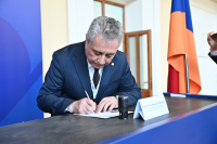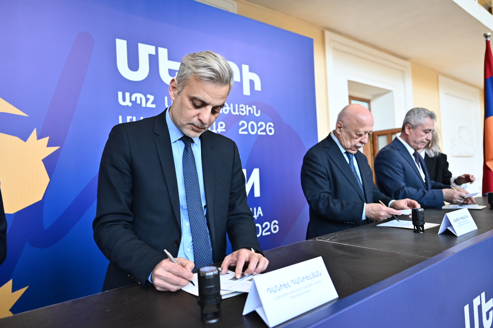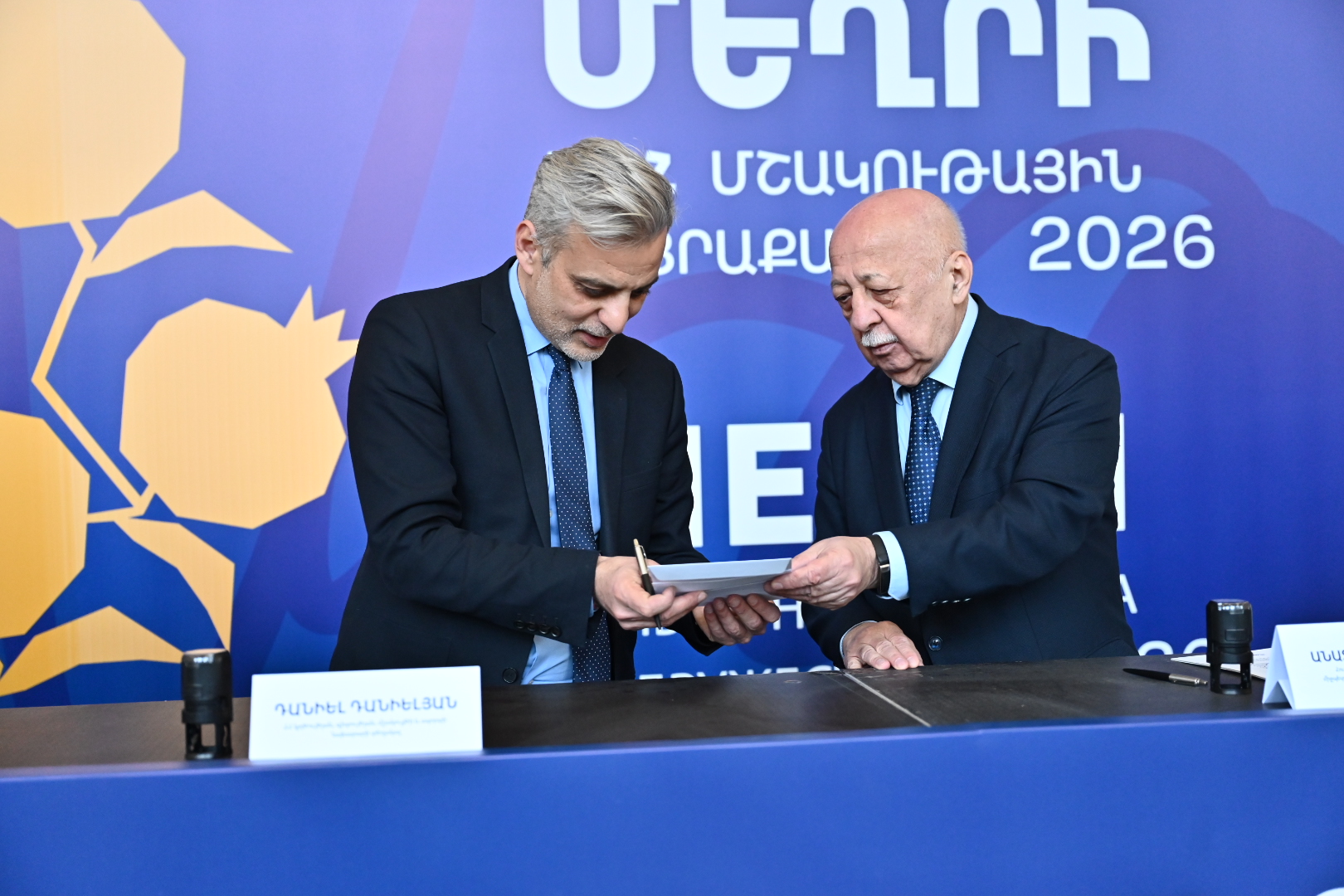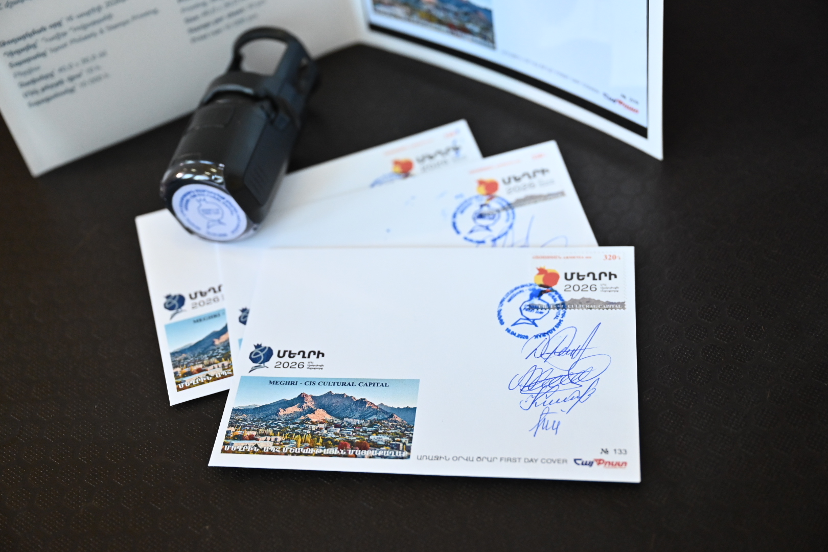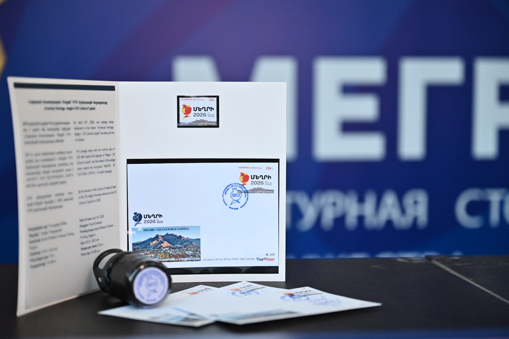 Гашение марки провели заместитель министра образования, науки, культуры и спорта Армении Даниел Даниелян, глава общины Мегри Хачатур Андреасян, исполнительный директор Межгосударственного фонда гуманитарного сотрудничества стран СНГ Анатолий Иксанов и заместитель начальника управления политического, гуманитарного и социального сотрудничества Исполкома СНГ Шамсиддин Козиев.