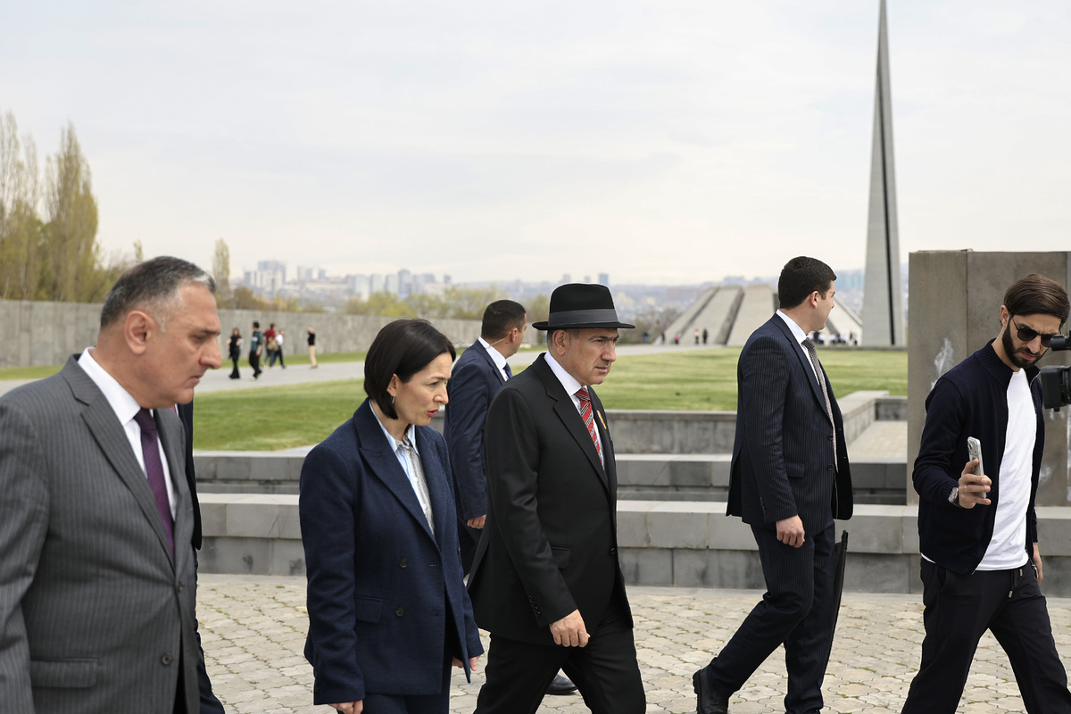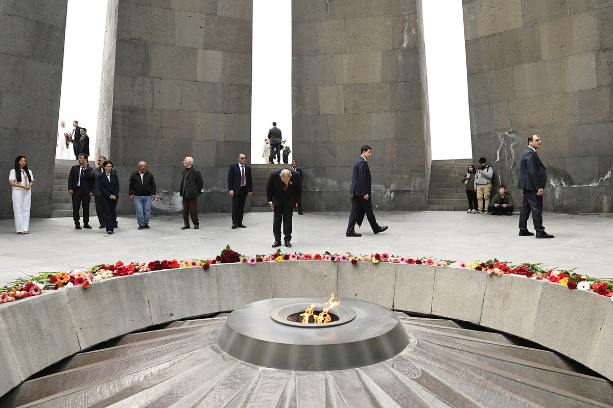 Премьер-министр Республики Армения Никол Пашинян в сопровождении министра образования, науки, культуры и спорта Жанны Андреасян сегодня посетил Мемориал жертв Геноцида армян, ознакомился с выполненными и текущими работами по капитальному ремонту и благоустройству.